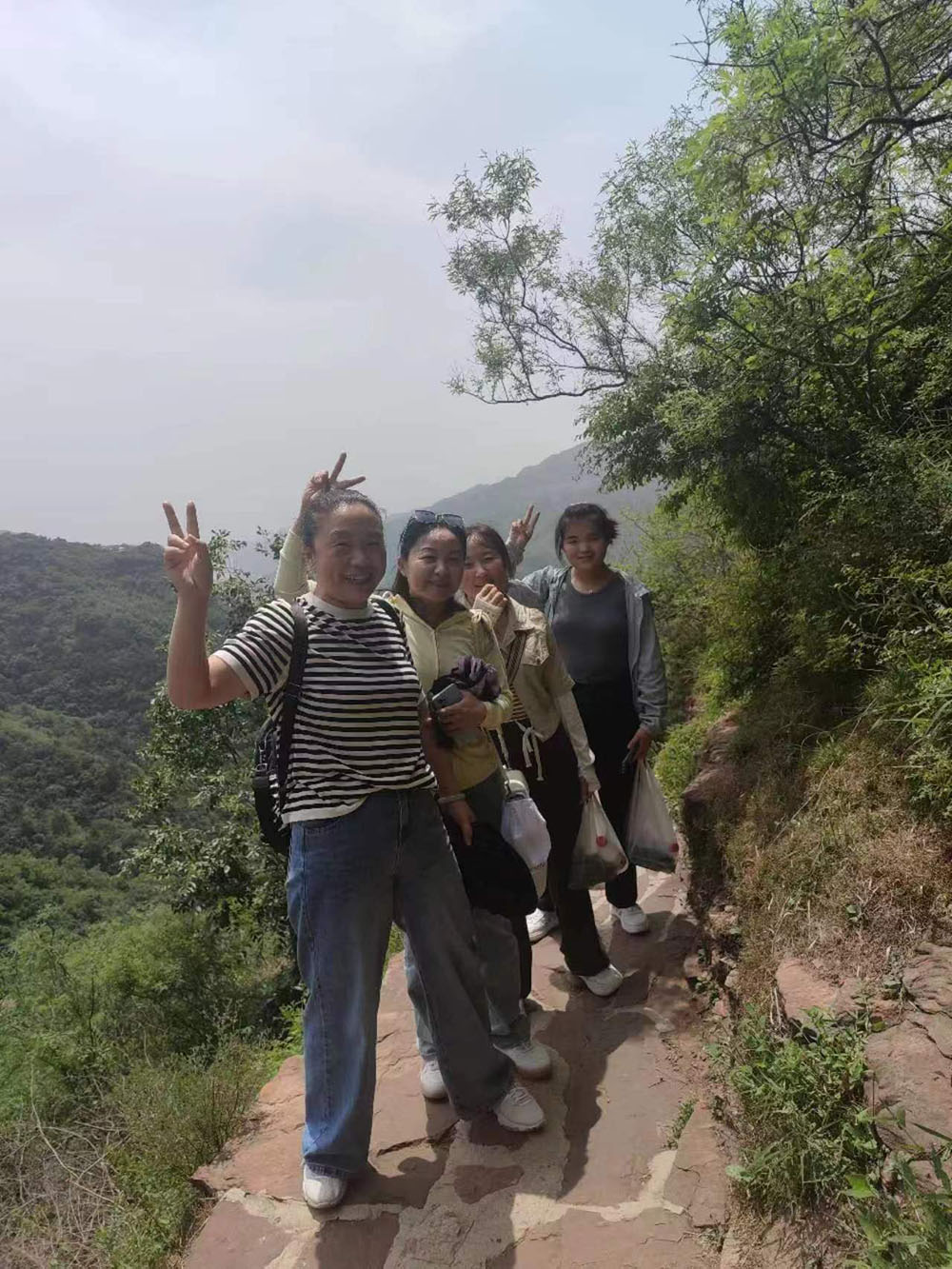 到達(dá)景區(qū)后,大家乘坐景區(qū)內(nèi)小火車來到趙匡胤千里送京娘的青銅雕像前合影留念。撫摸著青銅雕像,品味著這個凄美的愛情故事,感慨萬千。隨后,大家乘上游船,欣賞京娘湖碧波蕩漾的旖旎風(fēng)光,感受著一線天峰林絕壁的壯美風(fēng)景。到達(dá)碼頭后,大家拾級而上開始登山。隊伍分為前鋒、后營、中軍,團隊前后呼應(yīng),協(xié)調(diào)行動。上山的路雖然很陡峭曲折,有的路段甚至沒有臺階,但大家相互鼓勵,相互加油,堅持著向上攀登,向上攀登。中午,在山里人家簡單用餐后小憩一會兒,午后繼續(xù)向山頂發(fā)起沖鋒。每當(dāng)大家疲憊至極時,就停下來休息一下,吹著清爽怡人的山風(fēng),回眸走過的山路,又是一番別樣的風(fēng)景,一身的疲憊和勞累一掃而光。短暫休息后,大家繼續(xù)向上攀登,有的員工走不動了,落在了后面,大家就扶一把,拉一把,幫助他們跟上隊伍。在大家的共同努力下,終于成功登上了宋祖峰的頂峰,整個團隊沒有一個人掉隊。特別是車間女工表現(xiàn)的非常頑強,體現(xiàn)了不怕苦不怕累、積極向上的精神風(fēng)貌。團隊的一些老員工,還有員工家屬,不管是老人還是孩子,都表現(xiàn)的很好,堅持到了最后,站上了峰頂。